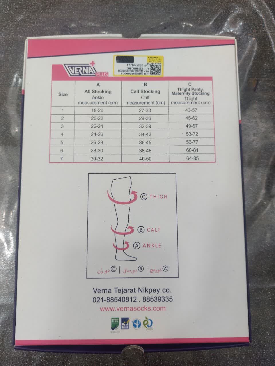 جوراب واریس با کفه زیر زانو مارک ورنا جنس ترک با کیفیت عالی مدل ورنا پلاس با کفه زیر زانو سایز 5