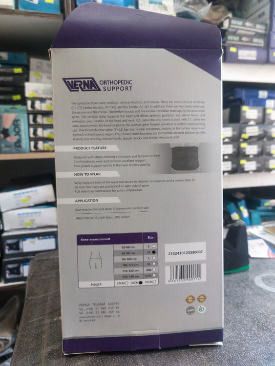 کمربند طبی چهارفنره ورنا رنگ مشکی در سایزبندی مختلف 27سانت دارای کش دبل تهیه شده از مواد اولیه ضد حساسیت موارد استفاده از این محصول در کمر درد و فاصله دیسک بین مهره ای و کشیدگی شدید عضلات