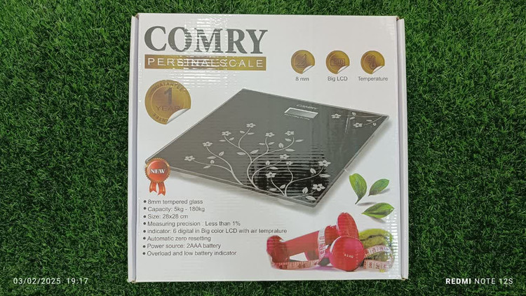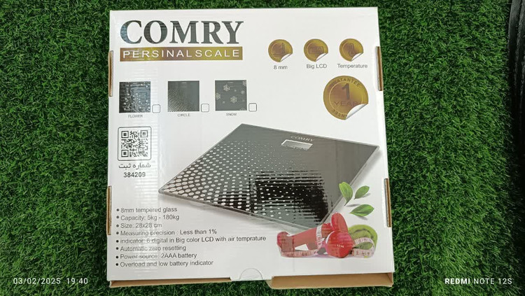 ترازوی بزرگسال دیجیتال مارک کمری comry رنگ مشکی و طرح های سیاو سفید