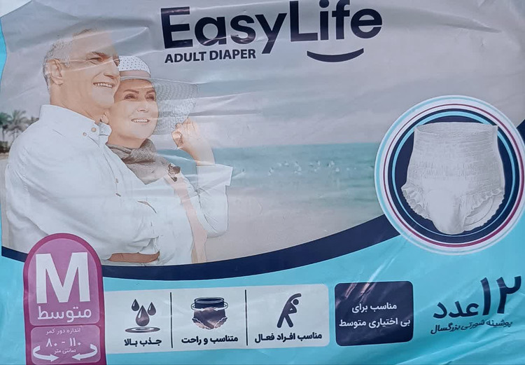 ایزی لایف شورتی به رنگ سفید تعداد 12عدد سایزM جذب بالا مناسب برای افراد بی اختیاری متوسط