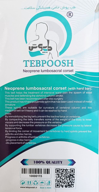 کمربندطبی سخت 4 آتل دار نئوپرنی مارک tebpoosh سایز s/m/l